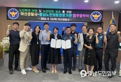 (충남도민일보 / TV / 정연호기자) 충청남도노인보호전문기관은 6월 13일 11시경 아산경찰서와 관내 노인 학대 피해가정에 대한 통합지원서비스 및 사회적 고립 대상자 대응체계 구축을 위해 업무협약식을 체결했다.
