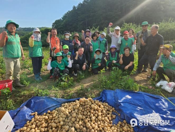 (충남도민일보 / TV / 김천호기자) 충북 영동군 상촌면 새마을협의회(회장 이태성·부녀회장 윤손희)는 지난 1일 유곡리 일원에서 올봄에 심은 감자를 수확했다.