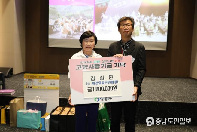 (충남도민일보 / TV / 김천호기자) 김길연 전 재경영동군민회장이 지난 6일 영동군에 100만 원의 고향사랑기부금을 기탁했다.