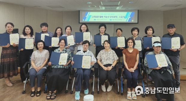(충남도민일보 / TV / 김천호기자) 계룡시는 지난 16일 시 보건소에서 ‘4060 재도약 준비 클래스’의 일환으로 마련된 ‘스마트폰 활용 지도사 양성과정’ 수료식을 가졌다고 전했다.