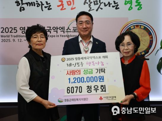 (충남도민일보 / TV / 김천호기자) 충북 영동군 6070청우회가 지난 13일 영동군에 사랑의 성금 120만원을 전달했다.