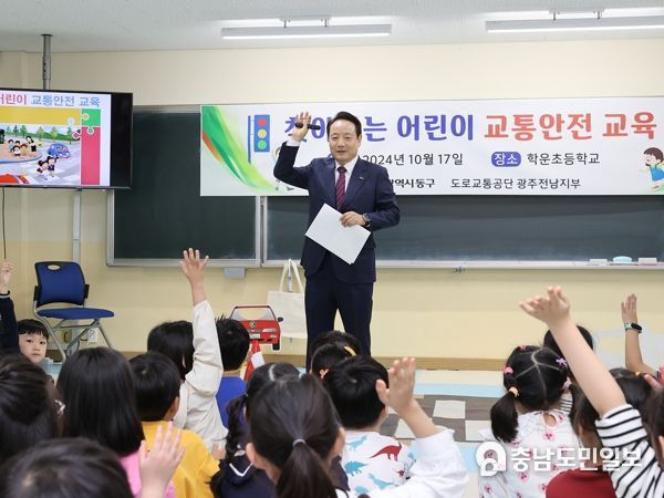 (충남도민일보(도민방송) 이주상 기자) 광주 동구는 한국도로교통공단 광주전남지부와 함께 지난 17일 학운초등학교 1학년 학생 46명을 대상으로 어린이 교통안전 교육에 나섰다고 밝혔다.