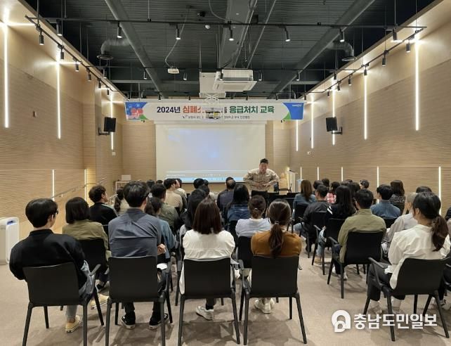 이에 순천향대학교 부속 천안병원 응급의학과 이한유, 김대단 교수를 초빙하여 △목격자 심폐소생술의 중요성 △자동심장충격기 원리와 적용 △자동심장충격기 실습 △영아심폐소생술 등 응급상황 발생시 신속한 조치를 하는 내용으로 교육이 진행됐다.