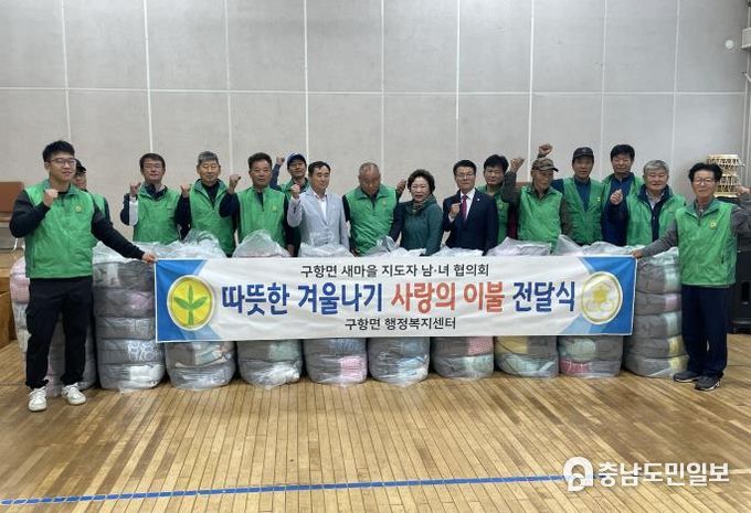 (충남도민일보(도민방송) 정연호기자) 구항면 새마을남녀지도자협의회가 동절기를 맞아 22일 지역 내 취약계층과 복지사각지대 주민들을 위한 ‘사랑의 이불 나눔’ 행사를 실시했다.