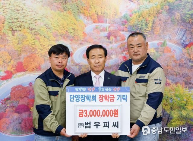 (충남도민일보(도민방송) 임경희기자) ㈜범우피씨는 단양장학회에 장학금 300만 원을 지난 5일 기탁했다.