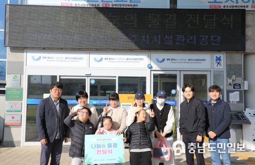 (충남도민일보(도민방송) 정연호기자) 충주시시설관리공단은 11월 8일, 충주시 장애인형국민체육센터에서 ‘나눔의 물결’ 행사를 성황리에 마쳤다. 이번 행사는 공단이 충주성모학교에 재학 중인 시각장애인 학생들에게 성금을 전달하며, 그들이 밝고 화창한 미래를 꿈꿀 수 있도록 응원의 메시지를 전하기 위해 마련됐다.