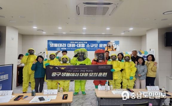 (충남도민일보(도민방송) 정연호기자) 부산광역시 중구는 8일 중부 소방서, 메리놀병원 등과 함께 2024년 생물테러 대응 모의훈련을 실시했다.
