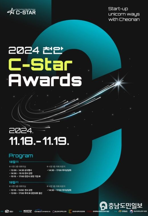 ‘2024 천안 C-Star Awards’는 천안시가 주최하고 천안과학산업진흥원, 충남정보문화산업진흥원, 한국자동차연구원, 충남창조경제혁신센터, 호서대학교 등 지역의 5개 창업지원기관이 공동주관한다.
