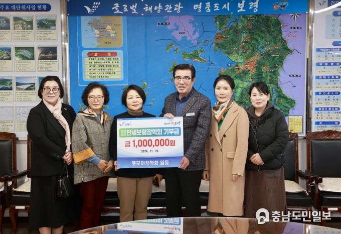 (충남도민일보(도민방송) 임경희기자) 보령시는 29일 시장실에서 김동일 시장과 뜻모아장학회(회장 김은자) 관계자가 방문해 만세보령장학금 100만 원을 기탁했다.