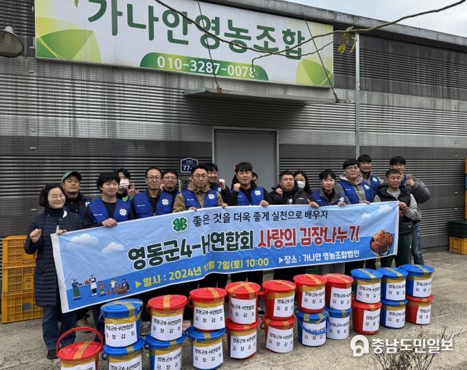 (충남도민일보(도민방송) 김천호기자) 충북 영동군4-H연합회(회장 박슬범)가 지역사회를 따뜻하게 만들기 위한 ‘사랑의 김장나누기’ 행사를 펼쳤다고 10일 밝혔다.