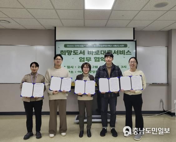 (충남도민일보(도민방송) 정연호기자) 아산시가 지난 6일 지역서점 3개소와 신규로 ‘희망도서 바로대출’ 업무협약을 맺었다.