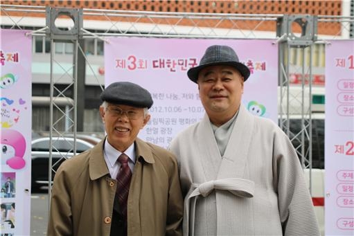 | ▲ 왼쪽부터 (사)나눔국민운동본부 손봉호 대표, 월명사 주지 월명스님(작가월명) © 정연호기자 | |