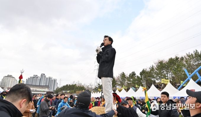 (충남도민일보(도민방송) 정연호기자) 김태흠 충남도지사는 13일 당진시 송악읍 기지시줄다리기 박물관에서 열린 ‘2025년 기지시줄다리기 축제’ 행사장을 찾아 지역 주민, 관광객들과 전통의 가치를 되새기는 시간을 가졌다.