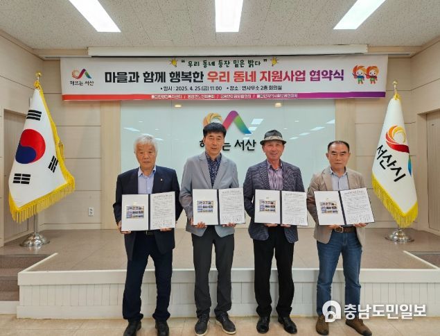 (충남도민일보(도민방송) 문성호기자) 서산시 음암면은 지난 4월 25일 주민이 중심이 되는 지역복지 실현을 위해 노인회, 이장단협의회, 지역사회보장협의체와 ‘마을과 함께 행복한 우리 동네 지원사업’ 협약을 체결하고, 지역 내 복지 사각지대 해소를 위한 본격적인 공동사업을 시작한다고 밝혔다.