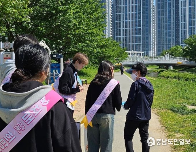 (충남도민일보(도민방송) 정연호기자) 천안시 동남구보건소 치매안심센터가 12일 천안중앙시장과 원성천 일대에서 치매 인식개선 캠페인을 진행했다.