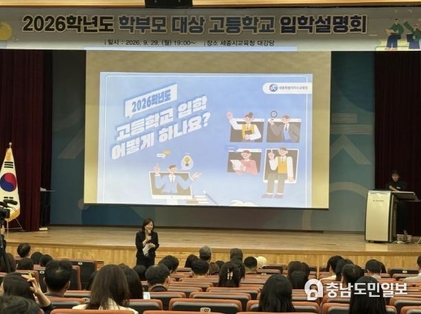 2026학년도 고등학교 입학 안내 학부모 설명회에서는 고등학교의 유형, 입학전형 및 선발 방법, 일반고 배정 방법, 직업계 고등학교 등 주요 내용을 안내했으며, 현장 녹화 영상은 세종시교육청 유튜브를 통해 10월 중순 이후에 송출할 예정이다. 또한, 고등학교 입학 정보 안내 영상도 동일하게 제공된다.