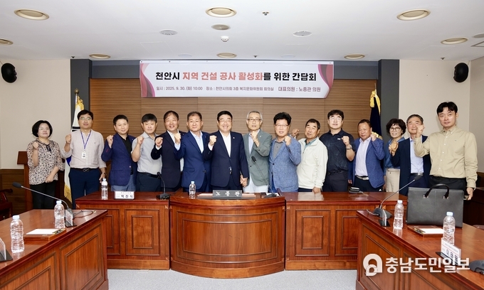 (충남도민일보 =천안/ 정연호기자) 천안시의회 노종관 의원(백석동, 국민의힘)은 30일 오전 10시, 시의회 3층 복지문화위원회 회의실에서 「천안시 지역 건설공사 활성화를 위한 간담회」를 열고 지역 건설업체 참여 확대와 건설산업 발전을 위한 방안을 논의했다.
