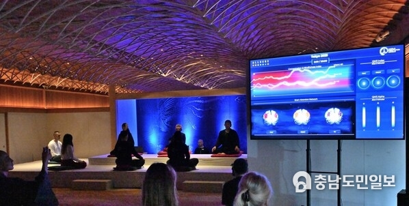 행사에서 참가자의 두뇌 활동, 집중도, 자기 인식, 내면의 고요가 정량화된 데이터로 화면에 시각적으로 표시되자 관객들은 처음으로 명상의 효과를 실시간으로 목격했다.