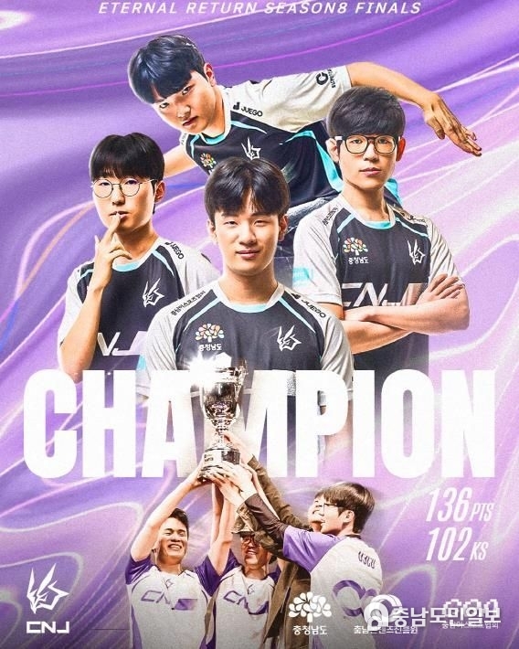 (충남도민일보 =충남) 정연호기자/ 충청남도를 대표하는 이스포츠 게임단 ‘CNJ Esports가 2025년 10월 12일 대전 드림 아레나에서 열린 이터널 리턴 마스터즈 시즌8 파이널에서 우승을 차지했다고 밝혔다.
