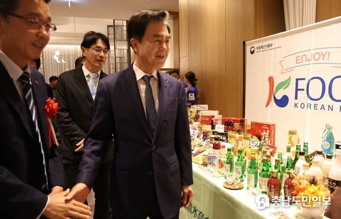 김 지사는 23일 오사카 뉴오타니 호텔에서 개최한 수출 상담회장을 찾아 충남 K-제품에 대한 품질을 보증하며 판촉 활동을 폈다.