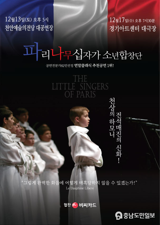 (충남도민일보 =문화) 정연호기자/ 세계 유일의 아카펠라 소년합창단이자 “평화의 사도”로서 전 세계적으로 널리 알려진 파리 나무십자가 소년합창단이 12월 13일(토) 천안예술의전당에서 사랑과 희망, 평화의 메시지를 노래하는 아주 특별하고 의미있는 “사랑과 평화의 콘서트”를 펼친다.