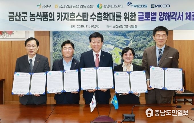 군 관계자는 “이번 협약을 통해 금산군 농식품이 카자흐스탄 시장을 넘어 중앙아시아 전역으로 확장할 수 있는 가능성을 보여줬다”며 “금산군 농식품이 글로벌 시장에서 경쟁력을 갖출 수 있도록 노력하겠다”고 말했다.
