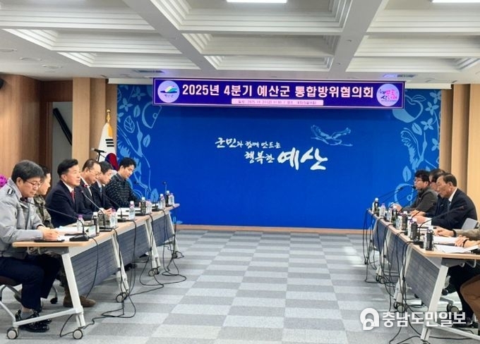 (충남도민일보 =예산) 정연호기자/ 예산군은 지난 21일 군청 대회의실에서 2025년 4분기 통합방위협의회를 개최했다.