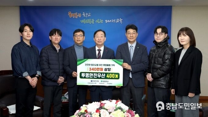 (충남도민일보=대전) 정연호기자/ 대전시교육청은 12월 8일 초록우산 대전지역본부로부터 340만원 상당의 투명안전우산 400개를 전달받았다고 밝혔다.