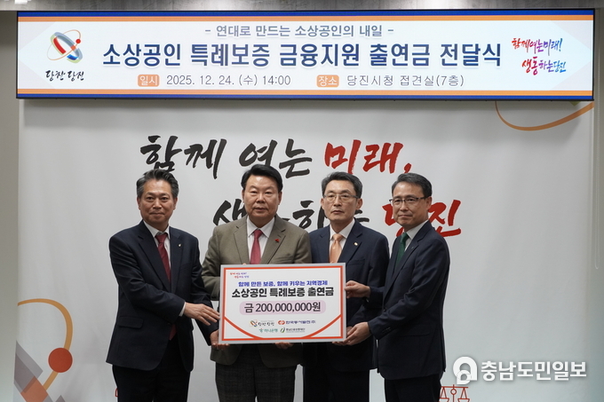 (충남도민일보=충남) 정연호기자/ 충남신용보증재단(이하 충남신보)은 24일 당진시청에서 한국동서발전, 하나은행, 당진시와 함께 ‘당찬 발전자금 지원사업’을 위한 출연금 전달식을 개최했다고 밝혔다.