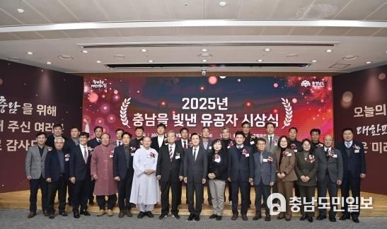 도는 29일 도청 대회의실에서 김태흠 지사와 수상자 등 100여 명이 참석한 가운데 2025년 충남을 빛낸 유공자 시상식을 개최했다.