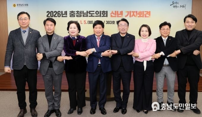 (충남도민일보 = 충남) 정연호기자/ 충남도의회는 5일 의회 대회의실에서 신년 기자회견을 열고 지난해 의정활동 성과와 올해 의회 운영 방향을 공유했다.