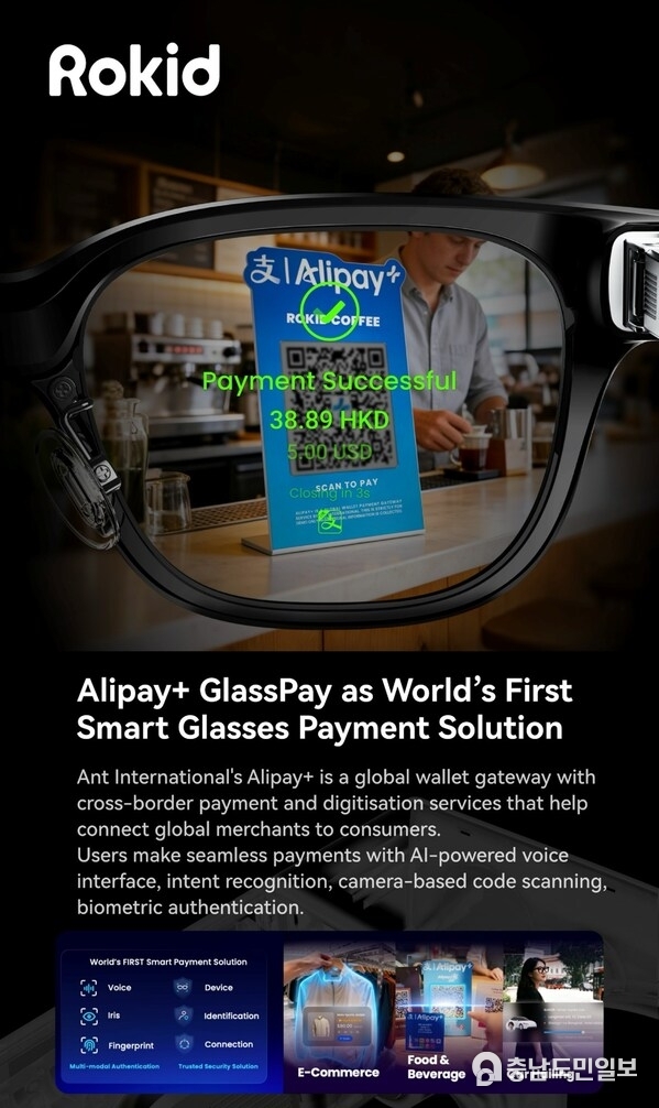 앤트 인터내셔널이 스마트 글래스용으로 특별 설계한 임베디드 결제 솔루션 Alipay+ GlassPay를 로키드의 스마트 글래스에 통합하면 Alipay+로 연결되는 디지털 지갑을 이용해 Rokid AI&AR 제품을 통해 결제를 완료할 수 있어 손을 대지 않고도 AI 기반 AR 거래가 가능하다.