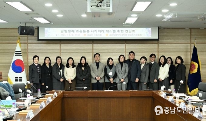 (충남도민일보 =세종) 정연호기자/ 세종특별자치시의회 행정복지위원회(위원장 김현미)와 김종민 국회의원(세종시갑)은 9일 의회 대회의실에서 ‘발달장애 초등돌봄 사각지대 해소’를 위한 정책 간담회를 공동 개최하고, 양육자들이 겪는 현실적인 고충을 해결하기 위해 머리를 맞댔다.