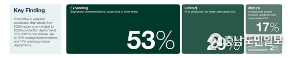 코펜하겐, 덴마크, 2026년 1월 15일 /PRNewswire/ -- 금융 기술 분야의 글로벌 선도기업 심코프(SimCorp)의 의뢰로 진행된 새 글로벌 조사에 따르면, 구매측 기업의 70%가 프런트 오피스 지원에 인공 지능을 성공적으로 차용하고 있는 것으로 나타났다.