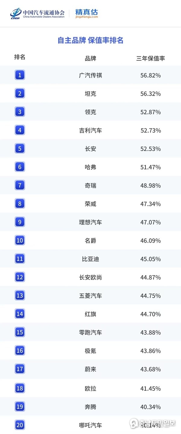 중국 자동차 시장의 경쟁이 심화됨에 따라 중고차 잔존가치는 차량의 장기적 가치와 평판을 평가하는 핵심 지표로 자리 잡고 있다. 중국자동차딜러협회와 징전구가 공동으로 발간하는 연례 잔존가치 보고서는 평가 방법론을 지속적으로 고도화해 왔으며, '잔존가치'를 제조사, 유통업체, 소비자, 정책 입안자 모두가 공유하는 '공통 지표'로 정착시키는 것을 목표로 하고 있다. 이 지표는 차량의 가치 잔존을 반영할 뿐 아니라, 소비자의 구매 결정에도 실질적인 영향을 미치고 있다.