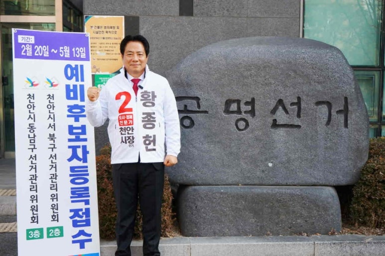 (충남도민일보 =천안) 정연호기자/ 황종헌 전 충청남도 정무수석보좌관(2급 상당)이 20일 천안시장 예비후보로 공식 등록하며 본격적인 선거 레이스에 돌입했다.