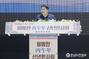 (충남도민일보 =예산)정연호기자/ 예산군은 지난 6일 더센트럴웨딩홀에서 관내 기관단체를 비롯한 각계 인사가 참석한 가운데 ‘2026년 신년하례회’를 성황리에 개최했다. 예산문화원이 주관한 이번 신년하례회에는 관내 기관·단체장과 지역 인사 등 400여 명이 참석해 새해 인사를 나누고, 지역 화합과 상생의 의지를 다지며 병오년(丙午年) 새해의 힘찬 출발을 함께했다. 예산군수는 신년사를 통해 “병오년 새해를 맞아 군민 모두의 소망과 염원이 실현되는 희망찬 한 해가 되길 바란다”며 “건강한 예산, 안전한 예산, 재난·재해가 없는 예산을 만들기 위해 최선을 다하겠다”고 말했다.