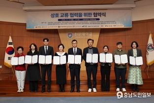 (충남도민일보(도민방송) =공주) 정연호기자/ 국립공주대학교(총장 임경호) 인문사회융합인재양성사업단(단장 남수중)은 29일 중소벤처기업진흥공단 충청연수원(원장 이완희)과 디지털 융복합 인재 양성을 위한 업무협약(MOU)을 체결했다고 30일 밝혔다. 협약은 인문사회 분야 학생들이 디지털 기술과 산업 변화에 대응할 수 있는 융합형 전문인재로 성장할 수 있도록 상호 협력체계를 구축하기 위해 마련되었다. 협약식은 국립공주대학교 인문사회과학대학에서 진행되었으며, 양 기관 주요 관계자들이 참석한 가운데 진행되었다. 양 기관은 본 협약을 통해 ▲디지털 융합교육 과정의 공동 개발 및 인프라 지원 ▲교육 커리큘럼 자문 및 우수 강사 Pool 공유 ▲창업지원을 위한 충남청년창업사관학교 입교 홍보 및 연계 지원 ▲디지털 융복합 인재 양성을 위한 협력이 필요하다고 인정되는 분야의 업무 공동 추진 등에 대해 협력하기로 합의하였다. 이를 통해 양 기관은 지역 중심의 디지털 융복합 인재 양성 혁신 생태계 구축을 목표로, 교육 및 연구 분야에서의 협력 기반을 확대할 계획이다. 남수중 국립공주대학교 인문사회융합인재양성사업단장은 “이번 협약은 인문사회계열 학생들이 디지털 역량을 강화하고,