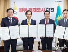(충남도민일보 =대전) 정연호기자/ 대전시는 7일 대전시청 10층 응접실에서 KAIST, 충남대학교, (사)바이오헬스케어협회(회장 맹필재)와 함께 의과학 융복합 인재양성 및 공동연구를 위한 업무협약을 체결했다. 이번 협약은 대전이 보유한 풍부한 바이오․의과학 연구 인프라와 우수한 교육․산학 연계 역량을 바탕으로 임상과 기초연구를 융합한 의사과학자(Physician Scientist) 및 의과학 분야 고급 연구인력 양성체계 구축을 위해 추진됐다. 협약에 따라 4개 기관은 ▲의사과학자 및 의과학 전문인력 공동 양성 ▲공동 연구 및 기술개발 협력 ▲교육·연구 인프라 및 정보 공유, ▲현장 실습 및 임상연계 교육 ▲지역 바이오기업 협력사업 등을 본격적으로 추진할 예정이다. 시는 본 협약을 통해, KAIST의 첨단 연구 역량, 충남대의 의학 및 임상 기반, 바이오헬스케어협회의 산업계 네트워크, 대전시의 행정 지원을 결합하여, 교육-연구-산업-정책이 유기적으로 연결되는 지역 혁신 모델 구현을 꾀하고 있다. 이장우 대전시장은 “대전은 과학기술과 의료, 산업이 조화를 이루는 대한민국 대표 바이오도시로, 이번 협약을 통해 연구와 임상이 결합된 고급 인재 양성의 중심지로 거듭