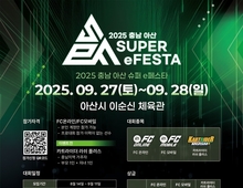 (충남도민일보 =정연호기자) 충남콘텐츠진흥원(원장 김곡미)은 오는 9월 27일부터 28일까지 양일간 이순신체육관에서 ‘충남 아산 슈퍼 e페스타’를 개최한다고 밝혔다. 이번 행사는 아산시가 주최하고 진흥원이 주관하며, 충청남도, FCA, 충남아산프로축구단, 농심 이스포츠 아카데미가 후원한다. ‘충남 아산 슈퍼 e페스타’는 지자체가 최초로 개최하는 전국 아마추어 FC 이스포츠 종목 특화 대회로, 지역 기반의 새로운 이스포츠 축제 모델로 주목받고 있다. 이번 대회에서는 ▲FC 온라인(개인전, PC) ▲FC 모바일(개인전, 모바일) 이 두 가지 주요 종목이 펼쳐지며, ‘카트라이더 러쉬 플러스’(2인 1팀, 모바일) 가 이벤트 종목으로 운영된다. 특히 첫날인 27일에는 K리그2 소속 충남아산FC의 홈경기가 예정되어 있어, 전통 스포츠와 디지털 스포츠가 어우러진 융합형 스포츠 축제로 기대를 모은다. 행사장 내에는 경기 외에도 다양한 체험 프로그램이 마련된다. △FC 온라인 신규 시즌 선수 체험존 △일일 코칭 프로그램 △드론 축구 체험 △충남글로벌게임센터 인디게임존 △축구공 과녁 맞히기, 볼링 등 스포츠 게임 체험존 아케이드 게임 존 등 전 연령층이 즐길 수 있는 복합