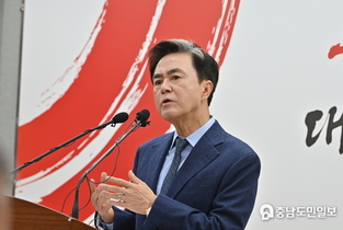 (충남도민일보=충남) 정연호기자/ 김태흠지사는 25일 11시 브리핑을 갖고 법사위가 충남대전통합특별법 상정을 보류하고 추후 논의키로 하면서 사실상 행정통합은 무산 지경에 이르렀다“고 밝혔다. 김지사는 ”충남대전 행정통합을 설계했던 당사자로서 무거운 책임감을 느끼면서 졸속법안을 무리하게 처리하려던 민주당에 깊은 유감을 표한다“고 했다. 김지사는 이어 ”행정통합은 속도가 아니라 재정과 권한 이양, 즉 내용이 중요하며, 통합시 스스로 살림을 꾸려나가기 위해서는 현행 75대 25인 국세와 지방세 비율을 우리 요구대로 60대 40 정도로 조정해야 하고; 예타면제나 특별지방행정기관 사무 이양, 개발인허가사업 의제처리 등 주요 권한을 과감하게 통합시에 넘겨줘야 함에도 민주당이 주도하는 통합법안엔 핵심 내용이 모두 빠지고 선언적 문구만 남았다“고 강조했다. 김지사는 ”행정통합은 단순히 몸집만 키우자는 것이 아니며, 자치분권과 균형발전의 초석을 놓는 국가 대개조 사업이며,‘통합시계’를 조금 늦추는 한이 있더라도 올바른방향으로 가야 한다는 점을 누차 강조했다“고 했다. 김지사는 마지막으로 ”우리 미래를 위해서는 ‘진짜 통합’을 이뤄내야 하며,국회 내에 여야 동수의 통합특별위원