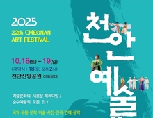 (충남도민일보 =천안) 정연호기자/ 한국예총 천안지회(지회장 현남주, 이하 천안예총)가 주최하고 천안시가 후원하는 제22회 ‘천안예술제’가 10월 17일부터 19일까지 신방공원 야외공연장과 천안문학관 등에서 개최된다. 천안예총 산하단체인 국악‧무용‧문인‧미술‧음악‧연극‧연예‧사진협회 등 8개 단체 순수예술인과 예술동호인 1,000여 명이 시민들과 함께하는 천안 최대 규모의 예술제다. 올해로 22회를 맞은 천안예술제는 18일 오후 2시 개막식을 시작으로 다양한 프로그램이 진행된다. ‘예술문화의 새로운 패러다임, 순수예술의 모든것’을 주제로 한 천안예술제의 주요 프로그램은 18일 △무용협회 ‘2025 청소년 댄스경연대회’ △연극협회 ‘마당극 뮤지컬 사랑뎐’ △예술동호인단체 ‘천차만별 콘서트’ △기획프로그램 ‘퍼포밍아트 페스타’ 를 진행한다. 19일에는 △문인협회 ‘2025 시민애송시 낭송대회’ △국악협회 ‘국악극 잔칫날’ △연예협회 ‘2025 향토가수 콘서트’ △음악협회 ‘독립! 음악으로 말하다’ 가 진행된다. 예술제에 앞서 17일(금) 5시에는 천안문학관에서 ‘천안예술문화 발전을 위한 예술제의 역할’을 주제로 예술 포럼이 열리고 18일부터 19일까지는 △미술협