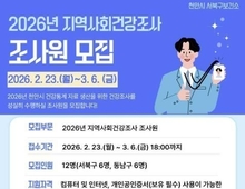 (충남도민일보 =천안) 정연호기자/ 천안시는 내달 6일까지 ‘2026년 지역사회건강조사’를 수행할 조사원을 모집한다고 23일 밝혔다. 지역사회건강조사는 질병관리청이 주관하는 국가승인통계로, 지역 주민의 흡연과 음주, 신체활동, 만성질환 이환 여부 등 건강행태 및 건강수준 전반을 조사하게 된다. 수집된 데이터는 지역 보건의료계획과 건강증진 사업 추진을 위한 기초 자료로 활용된다. 선발된 조사원은 사전 교육을 이수한 후 오는 5월 16일~ 7월 31일 표본 가구를 직접 방문해 조사 업무를 수행하게 되며, 업무가 완료되면 소정의 수당이 지급될 예정이다. 모집인원은 서북구와 동남구 각 6명씩 총 12명이며, 천안시에 거주하는 20세 이상 성인 중 컴퓨터와 인터넷 사용이 가능한 누구나 지원할 수 있다. 참여 신청은 천안시 서북구보건소 건강관리팀으로 방문하거나 우편으로 신청서를 제출하면 된다. 이현기 서북구보건소장은 “시의 내실있는 지역 건강통계 산출을 위해 책임감 있게 활동할 시민분들의 많은 참여와 관심 바란다”고 말했다.