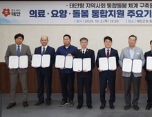(충남도민일보 =태안/문성호기자) 태안군이 관계기관과 손잡고 태안형 지역사회 통합돌봄 추진체계 구축에 시동을 건다. 군은 지난 2일 군청 중회의실에서 가세로 군수를 비롯해 건강보험공단 서산태안지사 이종민 지사장, 태안노인복지관 김노정 관장, 백화노인복지관 박상욱 관장, 안면도노인복지관 박근범 관장, 태안시니어클럽 노현석 관장, 태안군장애인복지관 이종만 관장, 태안지역자활센터 유정훈 센터장, 태안군자원봉사센터 이원희 센터장, 태안군장기요양기관연합회 이완숙 회장이 참석한 가운데 ‘의료·요양·돌봄 통합지원유관기관 협약식’을 개최했다고 밝혔다. 이번 협약은 지속가능한 돌봄 전달체계를 확보하고 군민의 존엄한 노후를 지원하기 위한 것으로, 이들 기관은 앞으로 △통합지원 사업 안내창구 운영 및 대상자 발굴의뢰 지원 △대상자의 상호 정보공유 및 서비스 제공 △태안형 통합돌봄 모델 구축을 위한 돌봄서비스 개발 등의 업무를 수행하게 된다. 의료·요양·돌봄 통합지원 사업이란 일상생활에 어려움을 겪는 노인과 장애인 등이 멀리 떨어진 요양원이나 요양병원 대신 자신이 살던 곳에서 건강하고 자립적인 삶을 유지할 수 있도록 지원하는 새로운 서비스 모델이다. 이 제도가 본격 시행되면 노인