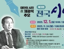 (충남도민일보 =태안) 문성호기자/ 태안 출신으로 1980년대 민족문학계에 한 획을 그은 故 채광석 시인 추모 전국 시낭송 대회가 그의 고향인 태안군에서 개최된다. 태안군은 오는 12월 1일 태안문화원 아트홀에서 ‘제3회 태안의 시인 故 채광석 추모 전국 시낭송 대회’를 열기로 하고 오는 11월 21일까지 참가자 신청 접수를 받는다고 밝혔다. 이번 대회는 태안군 안면읍 출신인 故 채광석 시인의 업적을 기리고 태안의 문화적 가치를 높이기 위한 것으로 지난 2023년부터 매년 개최되고 있다. 전국 성인(만 19세 이상) 남녀라면 누구나 참가할 수 있으며, 공평성을 기하기 위해 타 전국규모 대회 대상(1위) 수상자는 접수가 제한된다. 참가를 원하는 국민은 태안군 홈페이지에서 참가 신청서를 내려받아 작성 후 시 낭송 녹음 파일 1매(3분 내 분량) 및 낭송 원고 1부를 11월 21일까지 이메일로 제출하면 된다. 제출 파일명에 낭송자 성명과 낭송한 시의 제목을 표기하면 되며, 녹음 시 배경음악 사용은 불가하다. 군은 접수된 작품들을 대상으로 △시의 이해 및 선택 △태도와 자세 △발성 및 표현력 등 기준에 따라 11월 24일 예선 심사를 진행한 후 최종 본선 진출자를