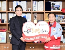 (충남도민일보 =세종) 정연호기자/ 세종특별자치시의회는 9일 의회 청사에서 대한적십자사 대전세종지사에 ‘2026년도 적십자 희망 나눔 모금 캠페인’ 성금을 전달하며 지역사회와 함께하는 나눔 활동을 실천했다. 이날 전달된 성금은 위기가정과 취약계층 지원, 재난구호 급식소 운영 및 긴급구호물품 지원 등 적십자의 인도적 활동에 사용될 예정이다. 임채성 의장은 “적십자 희망 나눔 캠페인은 어려운 이웃은 물론 재난 현장 최일선에서 희망을 나누는 과정”이라며, “세종시의회도 지역사회와 함께 시민 모두가 따뜻한 겨울을 날 수 있도록 책임감을 가지고 나눔 활동을 지속하겠다”고 말했다. 세종시의회는 앞으로도 시민 곁에서 따뜻한 나눔을 이어가며 연말연시 지역사회에 온정이 확산할 수 있도록 노력할 계획이다.