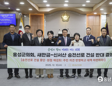 (충남도민일보 =홍성) 정연호기자/ 홍성군의회(의장 김덕배)는 10일 제317회 제2차 정례회에서 ‘새만금~신서산 송전선로 건설사업 반대 결의문’을 채택하고, 한국전력공사와 관계 기관에 사업의 원점 재검토와 주민 보호 대책 마련을 강력히 촉구했다. 이번 결의는 홍성군의회 11명 의원 전원이 공동발의한 것으로, 채택 직후 권영식 의원이 대표발의자로서 본회의장에서 내용을 낭독했으며, 이어 의원 전원이 ‘송전선로 건설 반대’ 현수막을 들고 단체사진을 촬영하며 강한 반대 의지를 표명했다. 한국전력공사가 추진 중인 새만금~신서산 345kV 초고압 송전선로 건설사업은 충남 10개 시·군과 전북 3개 시·군을 관통하고, 홍성군의 경우 11개 읍·면 전역이 경과 후보지에 포함되면서 지역사회 우려가 커지고 있다. 의회는 결의문에서 “군 전역이 초고압 송전선로의 영향권에 포함될 경우 주민의 생존권·재산권 및 정주환경 전반에 중대한 피해가 발생할 수 있는 매우 심각한 사안”이라고 지적하며, 사업 절차 또한 “주민 의견 수렴 부족, 정보 공개 미흡, 입지선정위원회 운영의 투명성 부족 등 절차적 정당성이 훼손되고 있다”고 비판했다. 홍성군의회는 결의문을 통해 ‘이 사업은 단일 지역