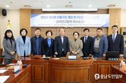 (충남도민일보(도민방송) 정연호기자) 예산군의회는 지난 18일 의회 문화강좌실에서 『예산군 자치법규 정비를 위한 연구모임』의 발족식을 개최하고 본격적인 활동을 시작했다. 이날 발족식에는 예산군의회 김영진(라 선거구·국민의힘), 김태금(가 선거구·국민의힘), 박중수(나 선거구·국민의힘), 이길원(가 선거구·국민의힘), 임종용(다 선거구·국민의힘) 의원 5명을 비롯해 군청 관계자 2명, 외부 전문가 4명, 의회사무과 직원 등 총 18명이 참석한 가운데 진행됐으며, 자치법규의 체계적 정비를 위한 연구모임의 목적과 향후 운영 방향에 대한 논의가 이뤄졌다. 이번 연구모임은 자치법규 전반의 실효성을 높이고 지역 여건과 행정 수요에 부합하는 법규 체계를 구축하기 위해 구성됐으며, 향후 운영 일정과 세부 과제를 구체화하고 정책개발연구용역의 방향 설정을 주요 안건으로 삼아 논의를 진행했다. 김영진 대표의원은 “자치입법은 지방자치의 핵심이며, 군민 삶의 질 향상을 위해 실질적이고 체계적인 법규 정비가 반드시 필요하다”며 “이번 연구모임을 통해 예산군 실정에 맞는 입법기반을 마련하고, 정책개발의 전문성을 강화해 나가겠다”고 밝혔다