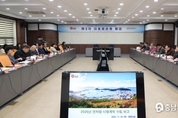 (충남도민일보 =금산)김천호기자/ 박범인 금산군수는 24일 군청 상황실에서 열린 간부회의에서 “지리적 이점 및 인삼 이미지를 활용한 스포츠 산업을 육성해 달라”고 당부했다. 이에 앞서 “축구, 야구, 파크골프, 마라톤 등 종목에 대한 육성 사업을 군에서 추진 중”이라며 “각 사업에 관해 전 직원이 관심을 갖고 적극적으로 협조해 달라”고 말했다. 또한 “스포츠 산업이 지역에 자리 잡으면 선수들과 관계자들이 이주해 오고 숙소·식사 등으로 인한 소비 증가로 지역 활성화에도 도움이 될 것”이라며 “아름다운 경관과 환경을 살리고 건강의 대명사 인삼을 활용해 사업을 추진하자”고 전했다. 이 외에도 그는 제333회 금산군의회 2차 정례회 준비, 겨울철 종합대책 마련, 조류독감 예방 등에도 철저를 기해달라고 언급했다.