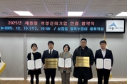(충남도민일보=세종) 정연호기자/ 세종특별자치시가 10일 보람동 행복누림터 대회의실에서 ‘2025년 세종형 여성친화기업’ 인증 협약식을 개최했다. 세종형 여성친화기업은 양성평등한 근로환경을 조성하고 여성인력 활용 확대에 적극적인 기업을 대상으로 인증·지원하는 제도다. 시는 지난 8월부터 통해 공개모집과 현장실사, 심사위원회 심의를 거쳐 ㈜씨앤(대표 조재우)과 ㈜팜킷(대표 양선흥) 등 2개 기업을 여성친화기업으로 선정했다. 협약에 따라 시와 인증 기업은 ▲여성 인력 적극 채용 및 역량 개발 ▲양성평등한 근로환경 조성 ▲일·생활 균형 지원 정책 실천 ▲여성 경력단절 예방 및 고용 유지 확대 등을 협력하기로 했다. 선정 기업에는 여성친화기업 인증 현판과 환경개선 사업비 지원, 중소기업육성자금 지원사업 이자 우대, 여성취업 연계 지원, 찾아가는 양성평등 교육 및 폭력예방 교육 지원 등의 혜택이 제공될 예정이다.